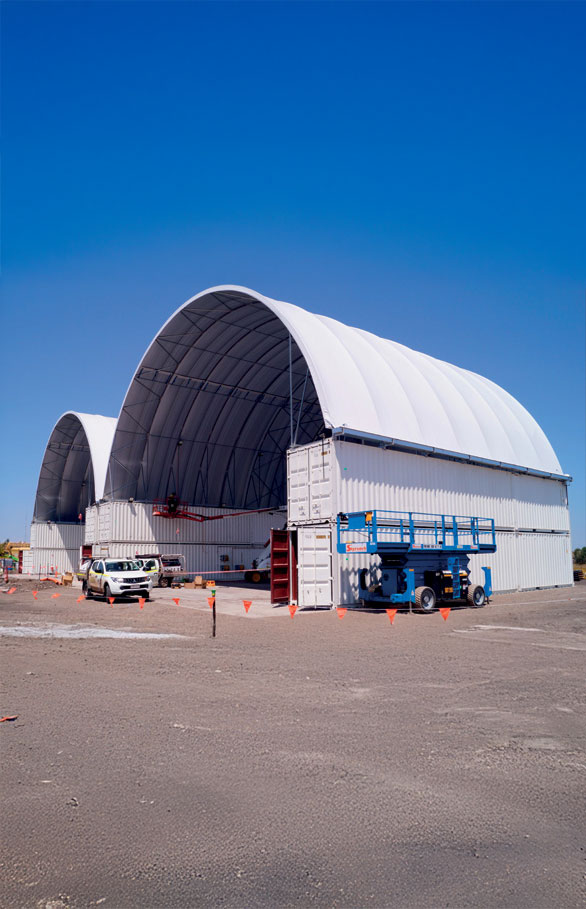 A Croft Structures container dome shelter is a durable, fabric-covered structure mounted on shipping containers, designed to provide secure storage, workshop space, or machinery protection. Our shelters are ideal for industrial, agricultural, and mining operations across Australia, combining strength, flexibility, and weather protection.