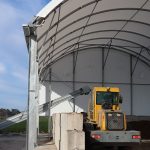 The challenge, however, was significant. The conveyor belt could not be shut down or removed during construction. The Croft Structures team engineered a tailored solution that allowed us to design and assemble the dome entirely in place without disrupting operations.
